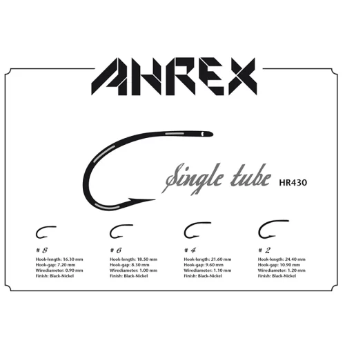 AHREX HR430 Tube Single -yksihaara putkikoukut ovat vakiinnuttaneet paikkansa lohen ja meritaimenen kalastuksessa. Tämä koukku tekee työnsä varmasti. Siinä on lyhyt varsi, vahva lanka ja leveä kita.