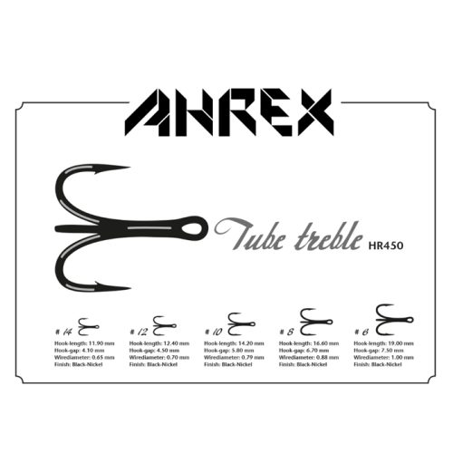 AHREX HR450 Tube Treble korkealaatuinen kolmihaara putkiperhokoukku on erittäin vahva ja terävä stinger-tyylinen koukku lohen ja meritaimenen kalastukseen.