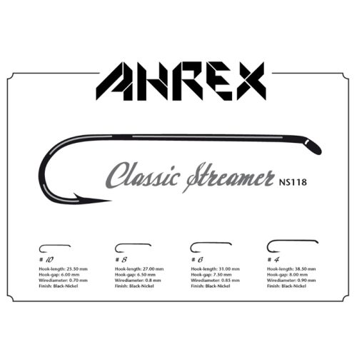 AHREX NS118 Classic Streamer D/E on korkealaatuinen 4X pitkä klassinen streamerkoukku, joka soveltuu moniin perhoihin. Pitkän varren vuoksi koukku on erinomainen myös pidemmille ja minimalistisille sidoksille.