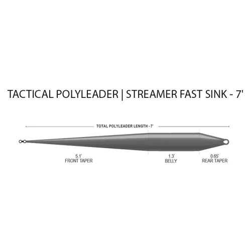 Streamer Super Fast Sink 7′ – Streamerkalastukseen kehitetty erittäin nopeasti uppoava polyleader. Polyleaderiin on hitsattu suoraan mikro-leikari, joka vähentää siiman kiertymistä suuria ja raskaita streamereita heitettäessä. Lisää vain 3–6 jalkaa / 0,9-1,8 metriä perukesiimaa ja aloita kalastus. Tyvipäässä on täydellisesti muotoiltu hitsattu lenkki, jonka avulla voit helposti kiinnittää sen suosikkiperhosiiman etupäähän lenkki-lenkkiin -liitoksella.