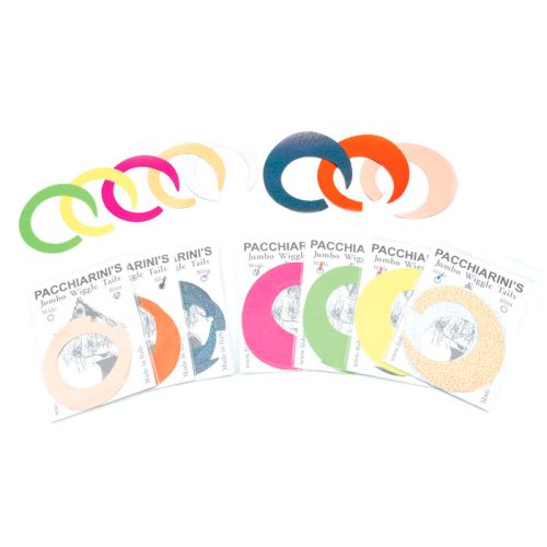 FLY-DRESSING Pacchiarini’s Wiggle Tails -pyrstöt houkuttelevat kaloja magneetin lailla ja ovat suosittuja hauenperhokalastajien keskuudessa, mutta ne toimivat loistavasti myös pienemmässä koossa streamereissä joki- ja meritaimenelle, ahvenelle ja kuhalle. Saat näyttäviä perhoja helposti ja ne myös kalastavat hyvin. Jigimäisestä pyrstöstä tulee perhoon lisää elävyyttä, mikä houkuttelee kaloja. Saat myös tehtyä näistä erinomaisia ahven- ja kuhaperhoja. Värit ovat erittäin kirkkaita, materiaali on kestävää ja sitä saa muokattua helposti, ilman että pyrstö hajoaa. Hyvin suosittua on pyrstön rei’ittäminen sekä saksilla muotoon leikkaaminen.