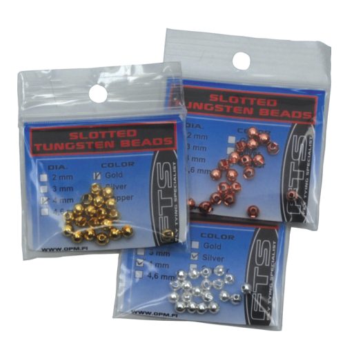 FTS Slotted Tungsten beads, Lovetut Tungsten Kuulat ovat kestäviä ja tuovat perhoon painoa. Niitä on helppo käyttää, koska niiden suuaukko on tarpeeksi avara, jotta kuula kääntyy melkein kaikkien koukkujen mutkasta helposti. FTS on hyvin perinteinen kuulatoimittaja, jolla on ollut hyvin pitkään erittäin laadukkaat messinki- ja tungstenkuulat, jotka ovat eräät markkinoiden suosituimmat. Kaikki perinteiset värit löytyvät sarjoista sekä kaikki tärkeimmät koot. Sarjassa on messinkikuula, tungstenkuula sekä halkiolla oleva tungstenkuula.