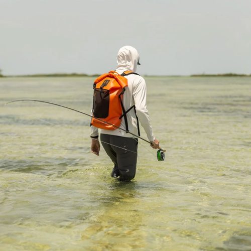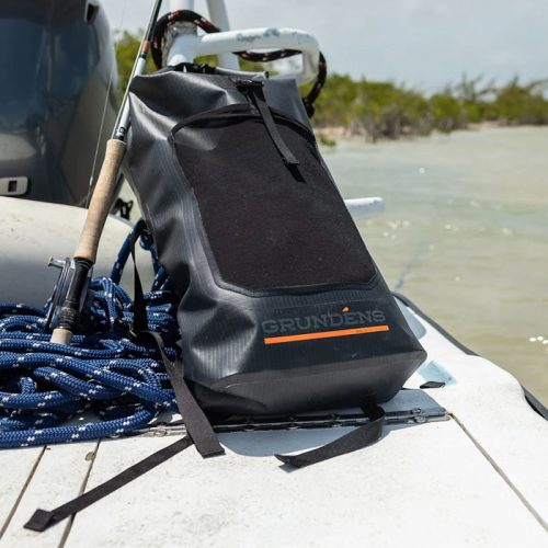 GRUNDENS Bootlegger Roll Top Backpack 30L reppu on suunniteltu kalastajille, jotka hakevat vedenpitävää ja kevyttä päiväreppua kalastusreissuille. Reppu tarjoaa riittävästi tilaa kaikille päivän aikana tarvittaville tavaroille sekä 100% vettä pitävän materiaalin, jotta sisälle pakatut vaatteet, tarvikkeet, eväät ja elektroniikka säilyy varmasti kuivana. Reppu suljetaan rullaamalla, joka pitää veden loitolla erinomaisesti ja tarjoaa nopean pääsyn tarvikkeisiin. Ulkopuolella on joustava pienisilmäinen verkkotasku esimerkiksi tarvikkeille ja siihen voi myös laittaa kastuneen pakkautuvan kahluutakin.
