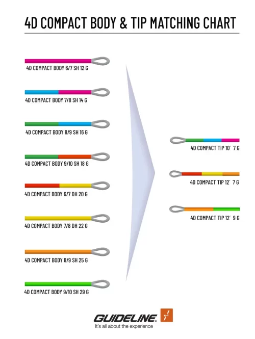 | 4D Compact Tip | 12´ / 3,6 m | 9 gram / 139 grains | F, H/I, S1/S3, S3/S5, S5/S7 | |||