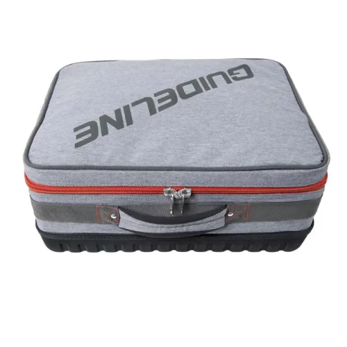 GUIDELINE Gear bag -tarvikelaukussa on reilusti tilaa kalastustarvikkeille. Gearbag -laukku on helppo muokata omiin tarpeisiin sopivaksi liikutettavien, pehmeiden väliseinien avulla. Laukun kannessa on neljä erillistä verkkotaskua, esimerkiksi siimojen säilyttämiseen. Gearbag -tarvikelaukku on valmistettu säänkestävästä materiaalista ja laukun pohja ja alareuna ovat vedenkestäviä ja kovitettuja.