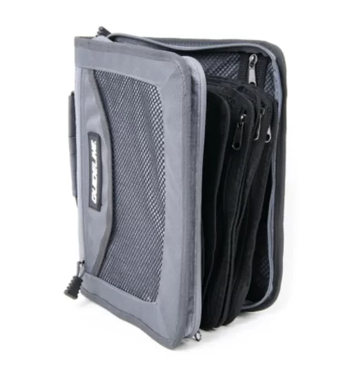 GUIDELINE Shooting Head Pack tyylikäs, käytännöllinen ja tilava laukku siimoille ja siimatarvikkeille. Laukku on valmistettu vahvasta nylonista ja sisäpuolen taskut ovat verkkokangasta. Laukussa on yhteensä 20 taskua, jotka on jaettu kymmeneen tarranauhalla kiinni olevaan tuplataskuun. Nämä tuplataskut voi irroittaa laukusta esimerkiksi liivin taskuun. Laukun kannessa on lisäksi vetoketjulla suljettava verkkokangastasku.