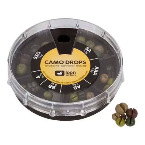 LOON Camo Drop -siimapaino on ympäristöystävällinen ratkaisu tilanteisiin, kun haluat saada perhon uppoamaan nopeasti syvälle. Nämä myrkyttömät haulit on päällystetty kestävällä mattapinnalla, joka lisää käyttöikää ja estää painoja liukumasta siimassa.