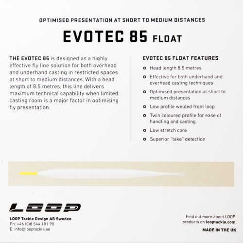 LOOP Evotec 85 Float -perhosiima on loistava vaihtoehto myös lohen perhokalastukseen yhdenkäden vavalla! Siima on erinomainen Bombereilla tai Riffling Hitch tekniikalla kalastukseen.