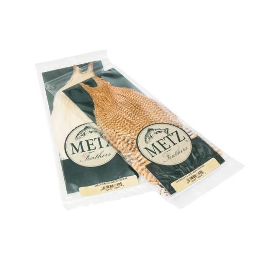 Metz on eräs maailman legendaarisimmista kukon sekä kanan tuotteistajista. Metzillä on vuosikymmenien kokemus niskojen ja satuloiden jalostamisesta perhonsitojille ympäri maailman, joten Metzin tuotteiden laatu on pitkällisen työn tulos. Häkilät ovat erittäin laadukkaita; ruodot ohuita ja siikaset teräviä, joten sinun on helppo käyttää häkilöitä kaikkiin perhoihin. Metzin niskat ovat huippulaatua pintaperhojen sitojille ja satuloista löytyy loistavaa materiaalia esimerkiksi lohipintaperhojen sitojille. Muista merkeistä poiketen esimerkiksi kananniskat ovat hyvin kookkaita ja niissä on myös hartiat mukana, eli niskaosan häkilöiden lisäksi materiaalia löytyy myös paljon enemmän kuin tavallisesti. Nämä korkealuokkaiset kananniskat ovat loistavaa materiaalia uppoperhoihin. Kanansatuloista tehdään esimerkiksi lohiperhojen kurkkuhäkilät, mutta nämä luonnollisesti soveltuvat loistavasti myös streamereiden sidontaan. Värejä tulee pian lisää ja varsinkin putkiperhojen sitojille on jo tulossa paljon kirkkaita värejä.Metz-niskat ovat häkilämäärältään suuria ja kookkaita, joten hyvin usein puhutaankin, että kauan aikaa sitten ostettu niska riittää edelleen. Kokonaisen niskan ostaminen on aina järkevää, kun tarvitaan tiettyä väriä paljon. Kaikki laatuluokat ovat laadukkaita, mutta #1-luoassa on enemmän hyvin pieniä häkilöitä, kuin esimerkiksi #3-luokassa. Usein #3-luokka on paras niska aloittaa ja sitojan tarpeiden mukaan kasvattaa muita värejä sekä laatuluokkia.