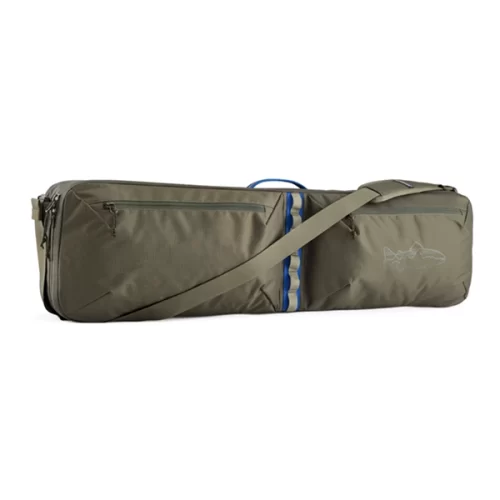 Patagonia Black Hole Rod Case laukkuun mahtuu pakattuna neljäosaiset vavat aina 11-jalkaisiin asti, laukun sisäsosa on pituudeltaan 91 cm. Vapojen lisäksi laukkuun pakkaat myös muut tarvikkeet mukavasti järjestykseen. Black Hole Rod Case kulkee mukana selässä ja kantohihna on säädettävissä juuri oikean pituiseksi tai sitten laukku on helppo laskea lentolaukun kahvaan. Erinomainen laukku paljon matkustavalle perhokalastajalle!