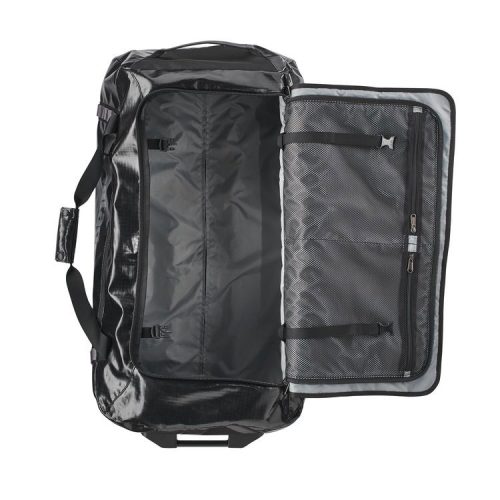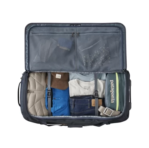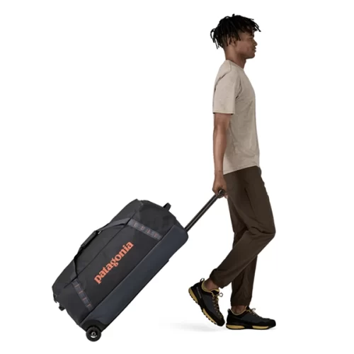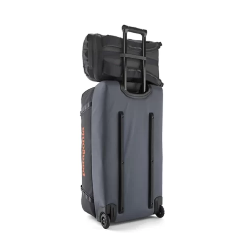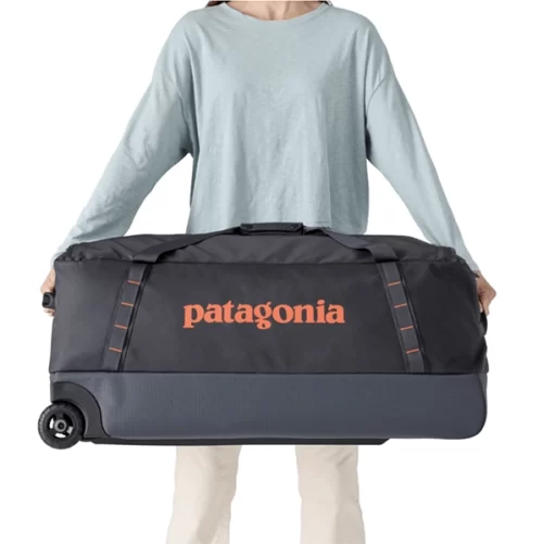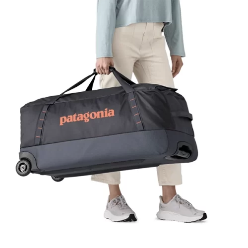 PATAGONIA Black Hole Wheeled Duffel 100 L on laadukas säänkestävä perhokalastajan matkalaukku kaikille pidemmille kalareissuille! Black Hole Wheeled Duffel 100L on tilava ja kestävä laukku, jossa on kantohihnat, pyörät ja teleskooppikahva. Laukkua voi kantaa ja kuljettaa kantohihnoista tai vetämällä perässä. Valmistettu kierrätetystä materiaalista.
