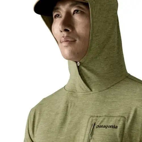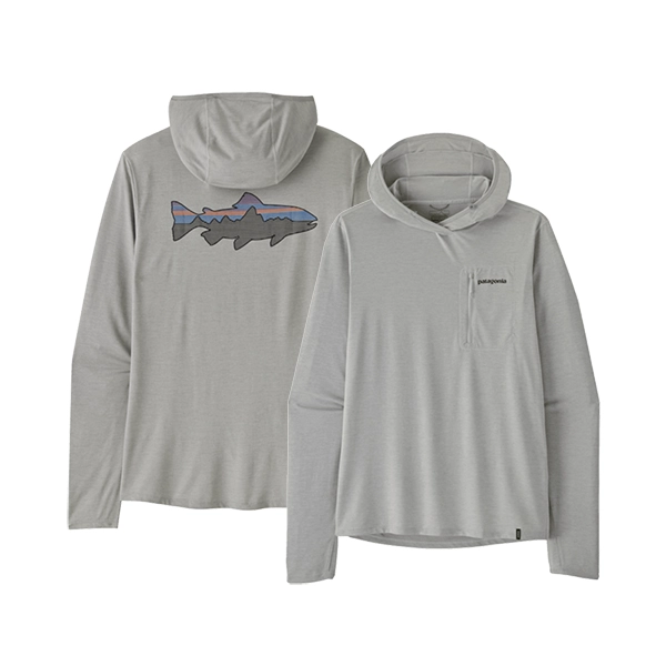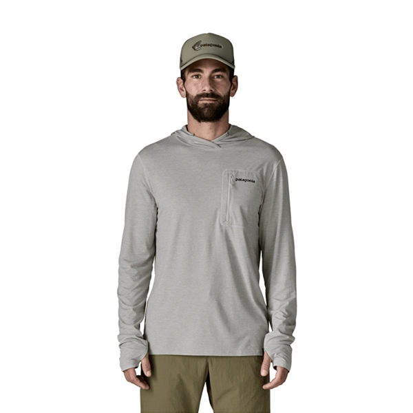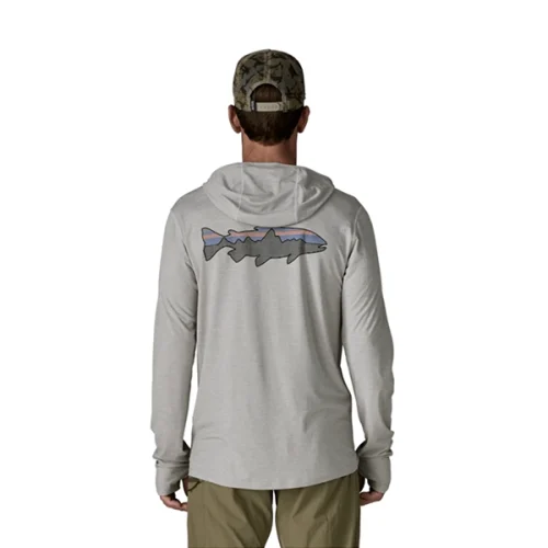 Saatavilla myös huputon PATAGONIA Men’s Long-Sleeved Capilene Cool Sun Shirt – Fitz Roy Trout