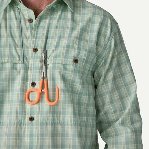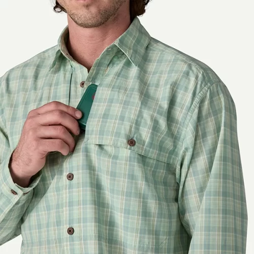 PATAGONIA Men’s Long-Sleeved Island Hopper Shirt on kuuman sään ehdoton vaate, jossa on kalastukseen suunniteltuja sekä viilentäviä ominaisuuksia. Materiaali on nopeasti kuivuva, kevyt ja kosteutta siirtävä ja tarjoaa erinomaisen käyttömukavuuden helteisissä olosuhteissa. Perhokalastuksessa vaatetus on altis kastumiselle, esimerkiksi kahlatessa tai kalaa vapauttaessa ja materiaalin ansiosta paita kuivuu hetkessä. Pystysuuntaiset tuuletusaukot selässä parantavat liikkuvuutta heitettäessä ja lisäävät ilmanvaihtoa, myös repun tai perholiivin alla.