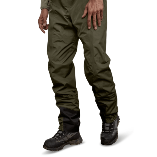 - Kahluuhousujen materiaali: 5.6-oz, 50-denierin 100% kierrätetty polyesterimikrokuitu, tiheä taftipintainen vedenpitävällä ja hengittävällä suojalla