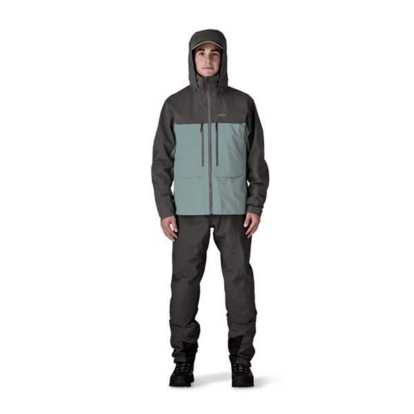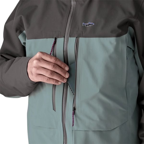 PATAGONIA Men’s Swiftcurrent™ Wading Jacket kahluutakki on uusi, Patagonian monipuolisin tekninen takki, joka on suunniteltu perhokalastukseen ja luonnon arvaamattomiin säämuutoksiin. Swiftcurrent kahluutakin yksityiskohdat ja ominaisuudet ovat tarkoin harkittuja. Vedenpitävä ja hengittävä H2No™ Performance Standard kuori ei sisällä perfluorattuja kemikaaleja, ja on valmistettu 100% kierrätetystä materiaalista. Kahluutakki on myös reilun kaupan Fair Trade Certified™ -ommeltu.