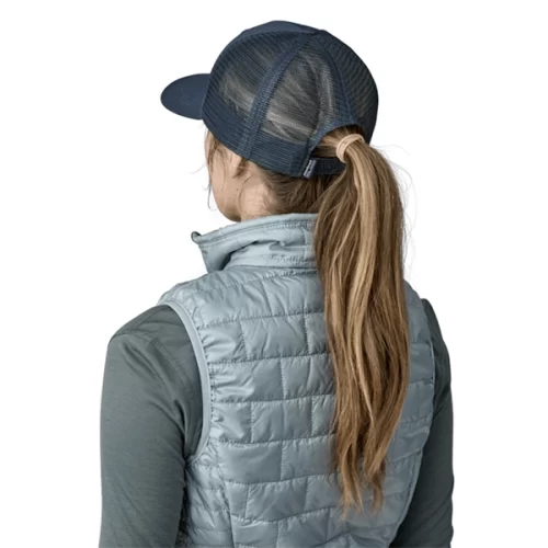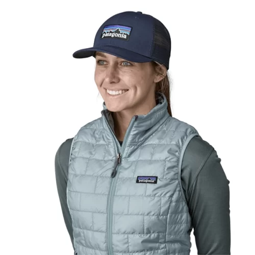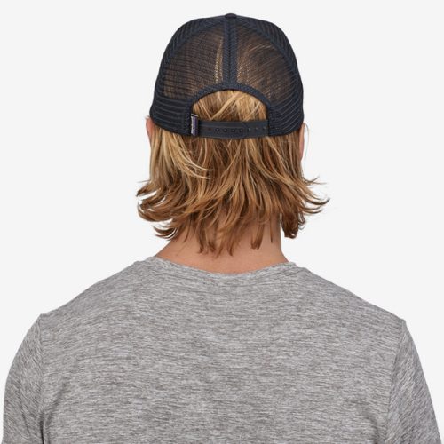 PATAGONIA P-6 Logo Trucker Hat on luonnonmukaisesta puuvillasta valmistettu lippis, jonka takaosassa on polyesteristä valmistettu verkkokangas. Lippiksen etuosassa on Patagonian logo. Lippiksen takaosa säädettävä.
