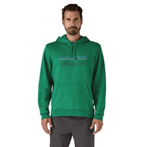 Patagonia P-6 Logo Uprisal Hoody on kierrätetystä hieman normaalia raskaammasta kankaasta valmistettu rento ja kestävä huppari kalalle ja arkeen. Hupparin etuosassa on kenguru-tasku käsien lämmitykseen ja Patagonian logo.