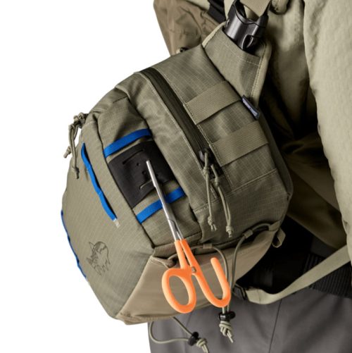 PATAGONIA Stealth Switch Pack 9L on monipuolinen laukku, joka kulkee mukanasi helposti ja tavarat ovat myös nopeasti saatavilla. Laukun olkahihna on tukeva, säädettävissä ja sitä voi kantaa oikealla tai vasemmalla olalla tai vaikka vyölaukkuna tarpeen mukaan. Laukussa on useita kiinnityspaikkoja tarvikkeille, riittävästi taskuja ja laukun alla on paikka vesipullolle tai vaikka pakkautuvalle kahluutakille. Laukun sisällä neljä tilavaa osiota, joiden avulla tarvikkeet pysyvät hyvässä järjestyksessä. Ulkopuolella edessä on tilava vetoketjullinen tasku, jonka sisällä on vielä kaksi pientä tarviketaskua. Kantohihnassa on myös joustava vetoketjullinen tasku sekä integroitu magneetti, joka pitää esimerkiksi perhoja tai siimaleikkureita tilapäisesti paikallaan perhoa vaihtaessa. Toinen magneetti löytyy laukun päältä.