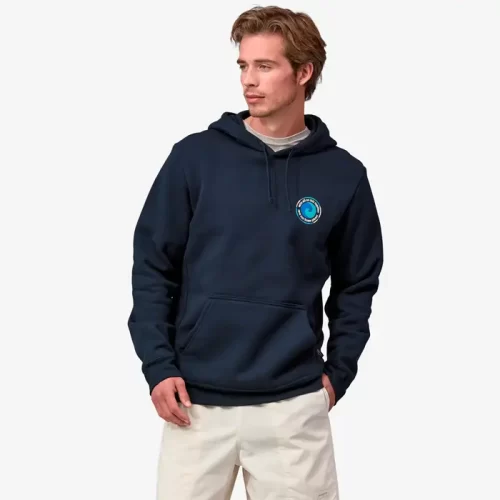 PATAGONIA Unity Fitz Uprisal Hoody on mukavan rento ja lämmin huppari, joka kestää käyttöä ja aikaa. Valmistettu 100% kierrätetyistä puuvillasta ja polyesterista. Sisäpinta on erityisen pehmeää fleece kangasta, joka tuntuu miellyttävältä ihoa vasten. Hupparissa on etupuolella tyylitelty maapallo, joka viestii ”we’re all on this together” ja ”save our home planet”. Selkäpuolella on Patagonia logo.