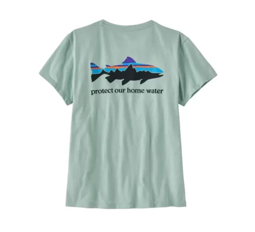 Patagonia Women’s Home Water Trout Pocket Responsibili-Tee t-paita on suoralla helmalla oleva normaalimallinen t-paita ympäristöä kunnioittaville ja arvostaville kalastajille. Home Water Trout Pocket Responsibili-Tee t-paidan valmistukseen käytetään kangasjäämiä ja kierrätettyjä pulloja, paita valmistetaan 100% :sti kierrätetystä kankaasta ja samalla raakamateriaalien tarve vähenee. Valmistettu Fair Trade Certified™ tehtaassa.