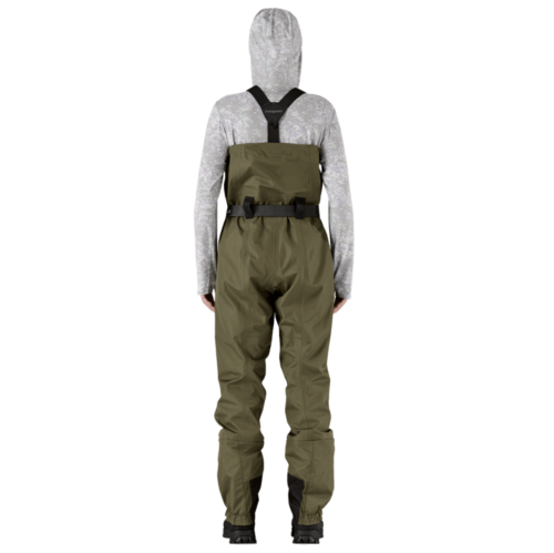 Kahluuhousukangas on läpäissyt tarkan H2No® Performance Standard testin, jossa mitataan materiaalin kestävyys ja vedenpitävyys. Uudelleensuunnitteltu rakenne ja haarasaumat vähentävät saumoihin kohdistuvaa rasitusta, tekevät housuista kestävämmät ja istuvammat sekä mahdollistavat vaivattoman liikkumisen vedessä. Innovatiiviset henkselit saa pudotettua näppärästi ja nopeasti rinnan korkeudelta vyötärölle vetämällä henkselin soljen narusta, ilman että henkseleitä tai vaatetta tarvitsee riisua. Tämä käytännöllinen ominaisuus tulee tarpeeseen etenkin lämpiminä päivinä sekä ottipaikoille siirtyessä. Henkselien takasolkijärjestelmä nopeuttaa ja helpottaa riisumista. Housujen sisäpuolella on tilava ja helposti avattava joustava tasku esimerkiksi käsineille sekä yksi vetoketjullinen tasku tarvikkeille. Ulkopuolelta löytyy yksi tilava joustava tasku perhorasioille sekä muille välttämättömille kalastustarvikkeille. Henkseleissä on myös kiinnityspaikat tarvikkeille ja lenkit pihdeille. Säädettävä, vahva ja tukeva vyö, turvallisella vyön soljella lisää turvallisuutta vedessä kahlaamiseen. Valmistuksessa on käytetty kierrätettyjä materiaaleja eivätkä ne sisällä haitallisia PFAS -yhdisteitä.
