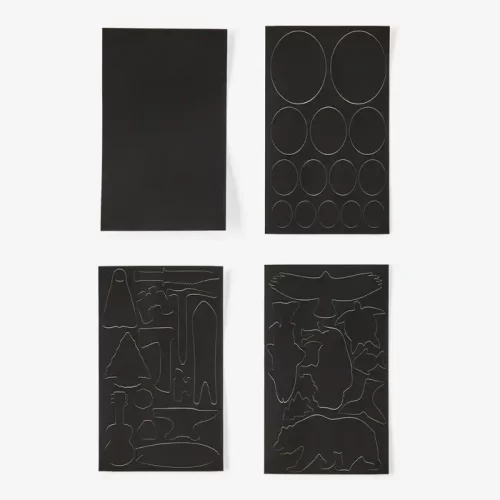 - Vaatelaastarit 4 arkkia: Yksi tyhjä arkki, josta voi leikata haluamansa muodon ja koon. Yhdessä arkissa on valmiita pyöreitä paikkoja. Kahdesta arkista löytyy eläin, luonto ja retkeily -aiheisia paikkoja