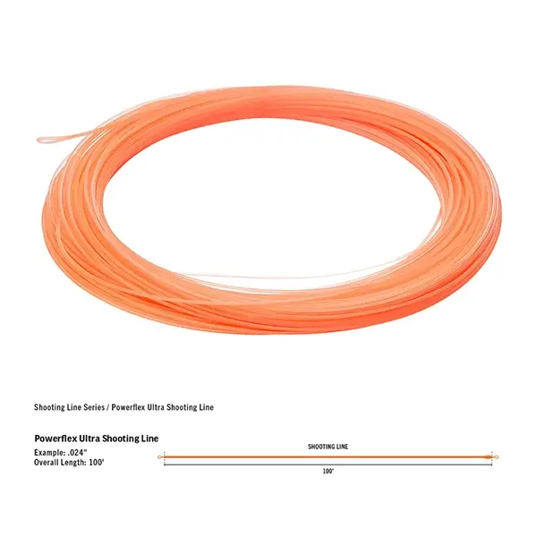 RIO Powerflex Ultra Shooting Line -juoksusiima on erinomainen valinta perhokalastajille, jotka käyttävät Skagit- tai Scandi-tyyppisiä ampumapääsiimoja. Se on varustettu erittäin kestävällä ulkopinnoitteella ja keskikovalla Powerflex-ytimellä, mikä mahdollistaa uskomattoman helpot pitkät heitot, parantaa kestävyyttä ja takaa sotkeutumattoman toiminnan heitosta toiseen. Siiman erittäin liukas pinnoite kelluu korkealla veden pinnalla, mikä vähentää vastusta ja helpottaa heittoa. Hitsatut “bulletproof”-lenkit kummassakin päässä tekevät varustamisen nopeaksi ja helpoksi. Etusilmukka on tarpeeksi suuri (6″ noin 15cm) helppoon siiman vaihtoon.