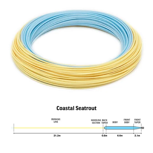 RIO Premier Coastal Seatrout Fly Line -perhosiima on suunniteltu rannikon meritaimenen perhokalastukseen, erityisesti skandinavian viileisiin rannikon olosuhteisiin. Siima on erittäin helppo heittää ja suunniteltu saavuttamaan vaivattomasti pitkiä etäisyyksiä, mutta samalla se mahdollistaa tarkan ja hallitun presentaation, jota rannikkokalastus vaatii.