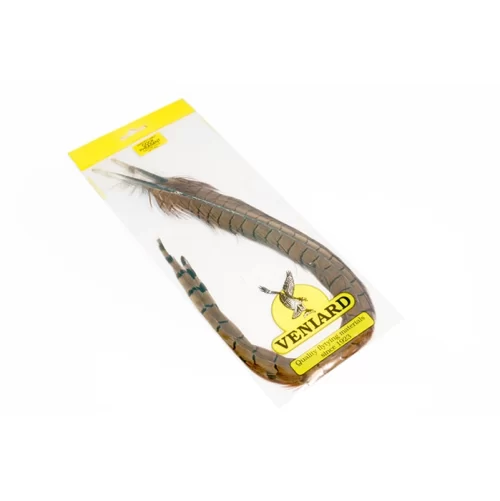 VENIARD Cock Pheasant Centre Tails -urosfasaanin keskuspyrstösulat ovat ne oikeat höyhenet klassiseen Pheasant Tail nymfiin, mutta materiaalia voi hyödyntää myös monissa muissa hyönteisjäljitelmissä pyrstöihin, siivenalkuihin ja jalkoihin. Riittoisa materiaali, josta sitoo paljon perhoja.