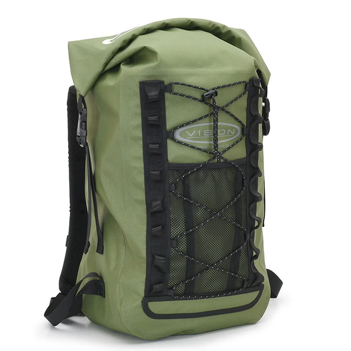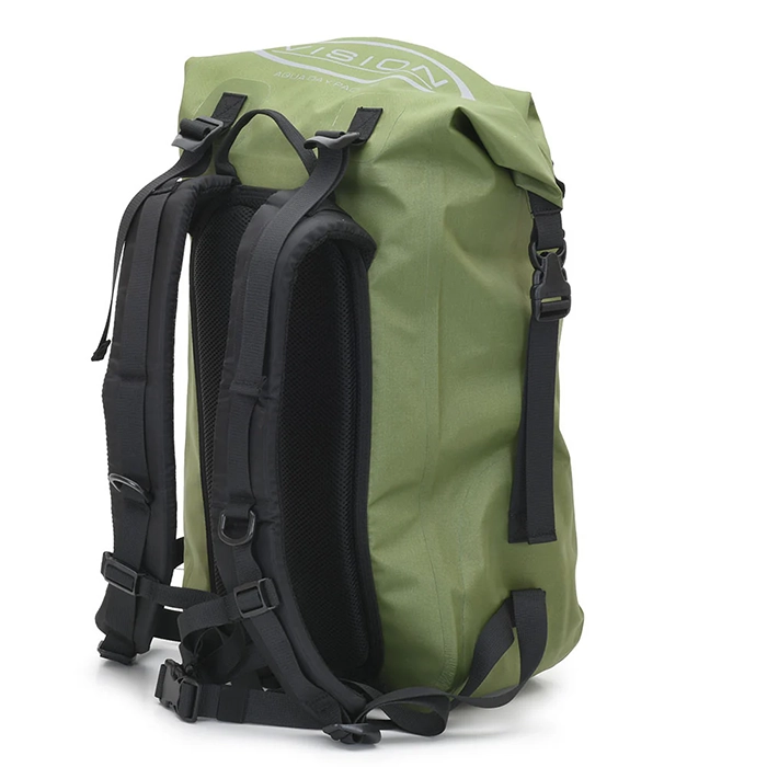 VISION Aqua Day Pack 35L -vedenpitävä reppu on omiaan päivärepuksi kalastusreissulle sekä luonnossa ja vesillä liikkuvalle! Vedenpitävänä reppu soveltuu mainiosti vaihtovaatteiden, kalastusvälineiden tai kameran ja kameratarvikkeiden säilyttämiseen. Tässä repussa on sisäiset ja ulkoiset verkkotaskut. Lisäksi repun ulkopinnassa on nailoniset kiinnityslenkit sekä elastinen nauha, jonka alle voi pujottaa vaikka kahluutakin. Olkaviilekkeiden D-lenkkeihin voi kiinnittää esim. Mini Bran. Repussa on pikalukitus, joten se on helppo ja nopea avata ja sulkea. Repun pääosio suljetaan rullaamalla. Repun vedenpitävyys ominaisuus voidaan taata pelkästään silloin, kun reppu on suljettu hyvin ja tarkasti.